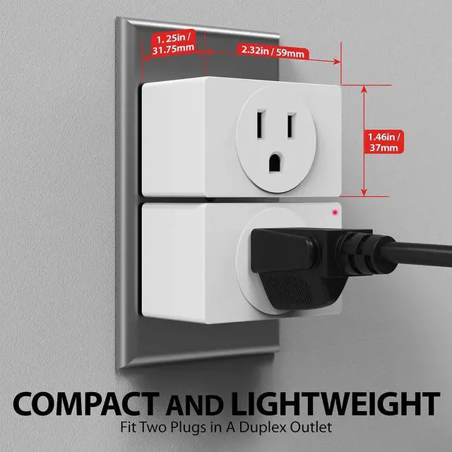 the Fosmon WavePoint wireless plug can fit one or two plugs in a duplex outlet. The low profile construction (2.4x1.5x1.3 inch / 6.0x3.8x3.3 cm) makes it easy fit behind furniture or in hard-to-reach areas.