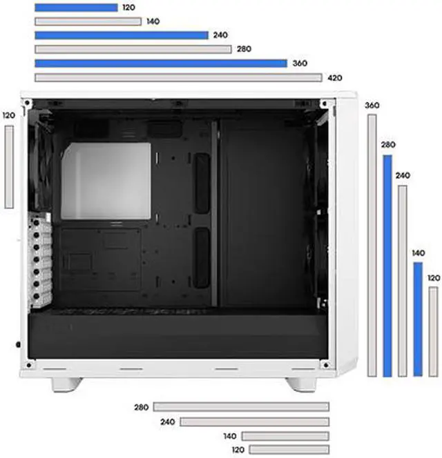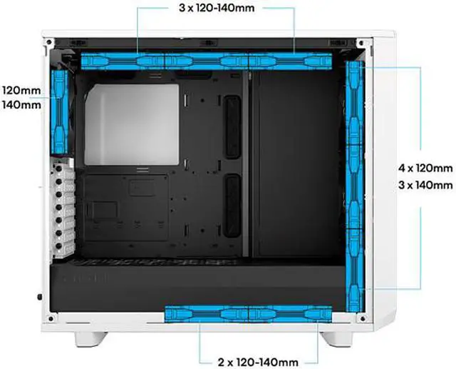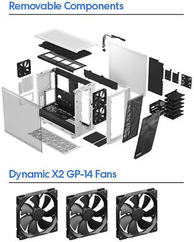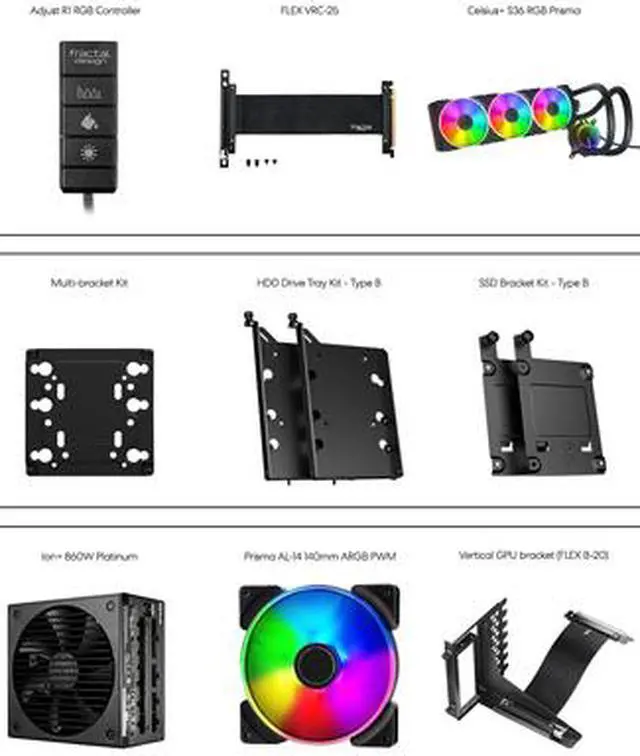 | Features | Iconic angular mesh design provides filtered airflow with a bold, stealth-inspired aesthetic Spacious and extensively adaptable dual-layout interior easily accommodates large motherboards up to and including 285 mm E-ATX Support for radiators up to 360 mm in front, 420 mm up top, or 280 mm in the base in the default Open Layout Includes 6 HDD/SSD trays, 2 SSD brackets, and 1 universal Multibracket for mounting up to 9 drives Expandable to 11 trays and 4 SSD brackets with 3 Multibrackets installed in the top and bottom for a max of up to 18 drives in Storage Layout New chassis design opens up to fully expose the case interior on three sides for totally unhindered installation and cable routing New front nylon filter that can be removed for increased airflow New front panel design with hinged removable mesh and tether-free bezel for easier access to front fan mounts Three front USB ports including one USB 3.1 Gen 2 Type-C with fast charging support and speeds up to 10Gbps Ultra-slim Nexus+ 2 fan hub connects up to three PWM fans and six 3-pin fans directly in line with cable channels along the edge of the case Outstanding cooling capacity with a total of nine 120/140 mm fan mounts and three preinstalled Dynamic X2 GP-14 fans Detachable PSU cable shield and integrated cable guides with velcro straps further simplify cable management behind the board Versatile Multibracket that converts any unused fan position to an HDD, SSD or pump mount Bridgeless expansion slots ensure obstruction-free connections and allow for a more centered vertical GPU installation via the new Flex B-20 PCIe riser (sold separately) Two vertical GPU slots for use with the Flex VRC-25 PCIe riser, available separately Easy-to-clean high airflow nylon filters on the front, top and base with full PSU coverage and convenient front access Ventilated PSU shroud with two-part removable cover for optimal cable concealment and front radiator support |