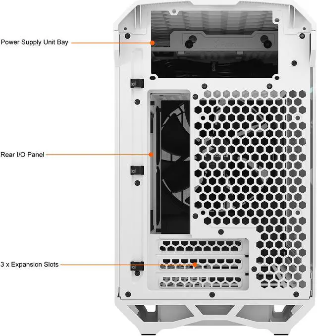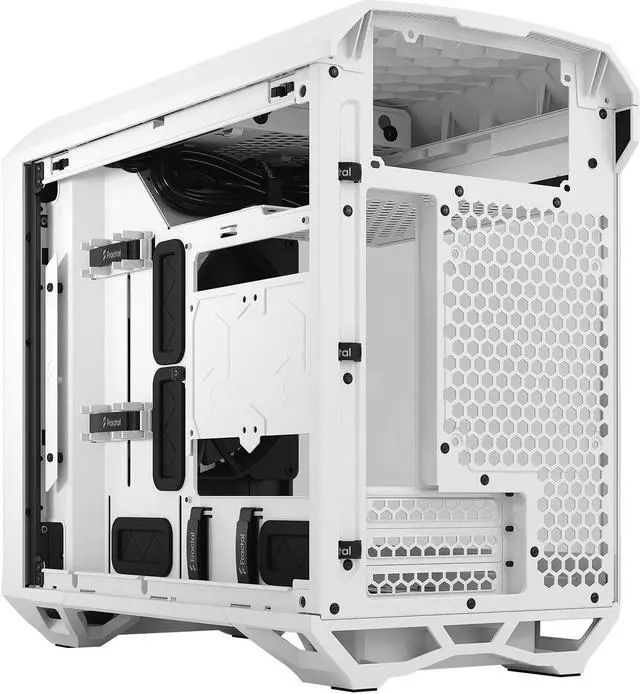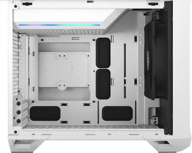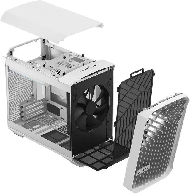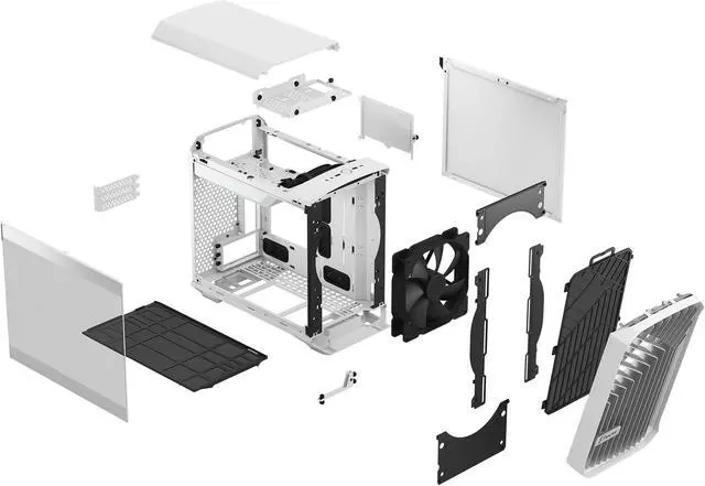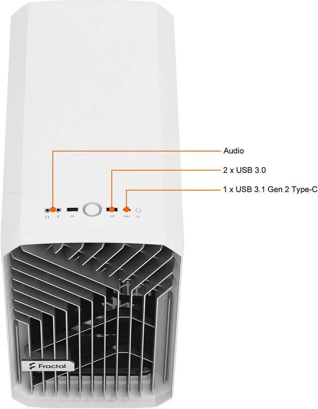 | Features | Open grille and 180 mm front fan optimized for maximum air intake Fractal Design 180 x 38 mm fan leverages power, size, and thickness for massive air-moving capacity Layout with unobstructed base intake offers exceptional GPU cooling potential Streamlined open interior and a top mounted PSU provides plenty of breathing room for components and maximizes performance potential Space optimized, yet still capable of handling up to 3-slot thick 335 mm long GPUs LED lights are fully controllable through motherboards supporting addressable RGB (5V) Seamless tempered glass panels with bolt-free top-latching mechanisms for easy handling Front fan brackets allow for unblocked airflow to the larger fan while catering to standard radiator sizes Removable top bezel and routing clips with velcro ties make for easy installation and cable management A sturdy, vibration-damped drive tray supporting a single HDD or dual SSDs with two optional mounting positions A dedicated SSD bracket with room for 2x 2.5" drives included Three bridgeless expansion slots The GPU is situated just above the bottom air intake, allowing it to breathe GPU support bracket that helps your GPU stay level Dust filters for front and bottom easily accessible by removing the front Integrated support for a water-cooling reservoir on the motherboard tray Includes a 180 mm Dynamic PWM fan for balancing performance, cooling and noise Front radiator support: 120/240 x 120 mm Rear radiator support: 120 mm Bottom radiator support: 120/240 x 120 mm, 140/280 x 140 mm |
