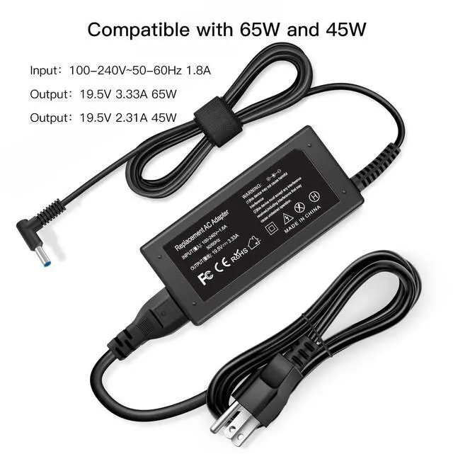 65W 19.5V 3.33A Laptop Charger for HP/EnvyEliteBook/Pavilion Series, Compatible with 45W AC Adapter Power Supply - Blue Tip