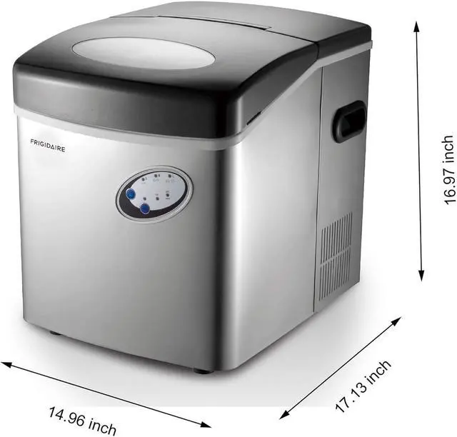 | Features | Control panel features easy to use button functions with LED indicators A power on LED indicator lets you know the unit is on and producing ice An ice cube select size button allows you to choose your ice size from small to medium to large. An LED light indicator will display which size you chose. An add water LED indicator alerts you if there is no water in the water reservoir and it's time to add more water An ice full LED indicator will let you know when your ice basket is full and it's time for it to be emptied. Ice basket will hold 2.5 to 3 pounds of fresh ice. A water drain with drain cap, rubber plug and drain spout makes it a cinch to drain and clean your ice maker A stylish cover with a transparent window enables you to see into the ice without opening the lid This ice maker is super quiet compressor cooled with a running noise of less than 43 decibels The ice maker has built-in safeguards and will automatically shut down if any problems are detected limiting accidental damage. |