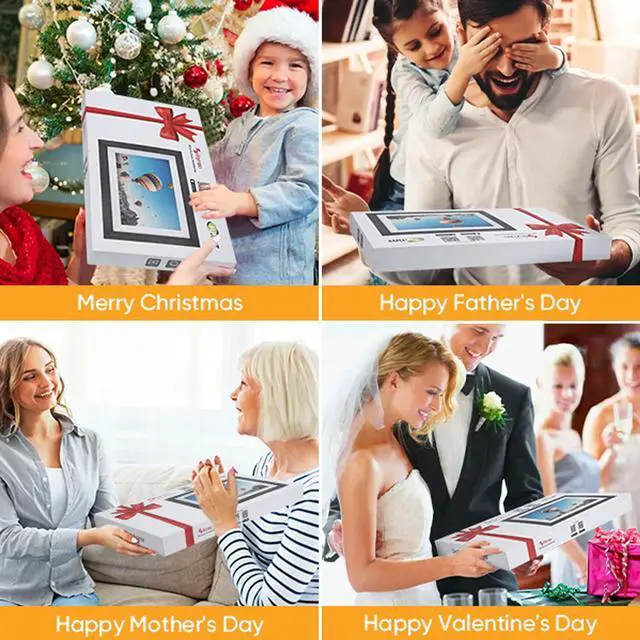 This wooden digital photo frame is amazing gifts for new parents, grandparents, newlyweds, college kids, or families separated by distance. For Mother's Day, Father's Day, Thanksgiving, Christmas, Birthday, Wedding Anniversary, Graduation Ceremony, Family Gathering, Party, and Other Important Days.