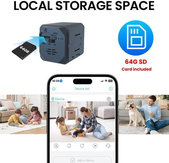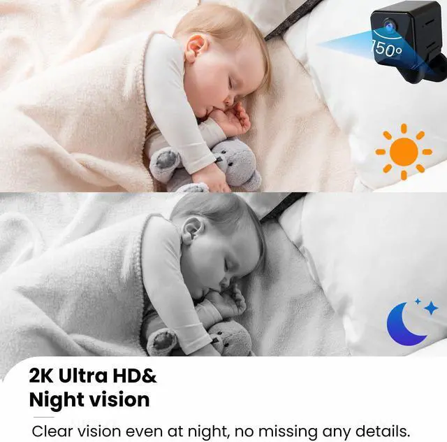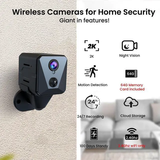 Security Camera, 2K WiFi Indoor Camera with 64G SD Card, 100 Days Standby Battery Life, Clear Night Vision, AI Motion Detection, Real-Time Record Security Wireless Surveillance camera