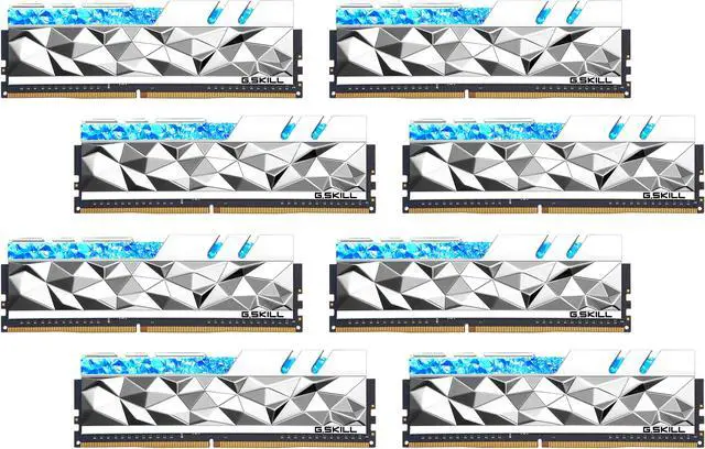 The Trident Z Royal Elite series is the upper echelon of DDR4 performance and design, featuring a meticulously sculpted crystalline pattern across the polished surface of the aluminum heatspreader, a patented full-length crystalline light bar, and customizable 8-zone RGB lighting. Created for both performance and aesthetics, the Trident Z Royal Elite is the ultimate choice for any high-end PC build.