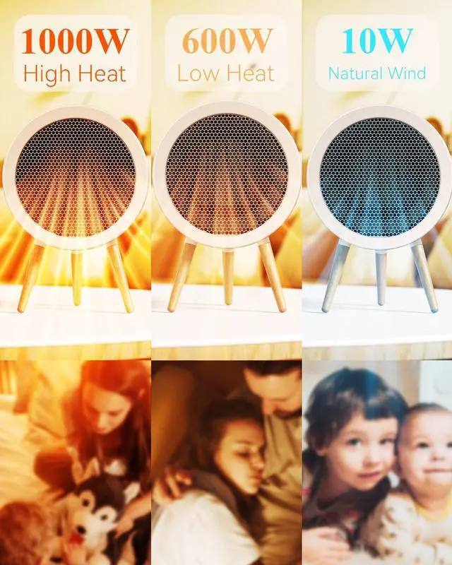 • 3 Modes for Year-Round Use: This small space heater offers 1000W high heat, 600W low heat, and a 10W fan mode to match your mood and the seasonideal for chilly days or light airflow in warmer weather