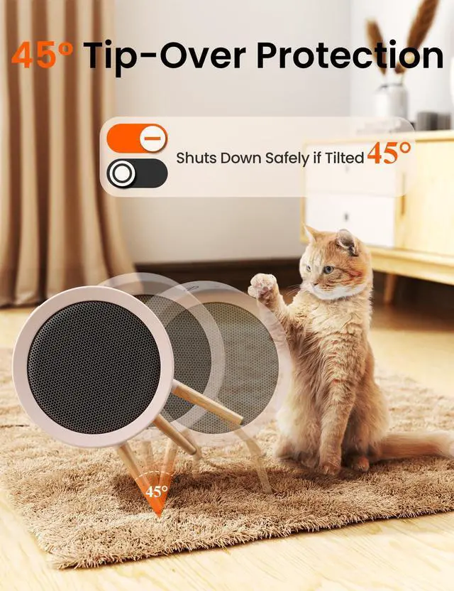 Designed with safety in mind, this small space heater automatically shuts off when tilted 45°. Perfect for homes with pets or busy desks — even if it’s accidentally bumped, you stay safe and protected.