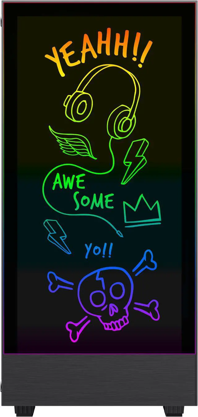 GameMax is proud to introduce Kreator Mid-Tower Computer Gaming Case. The Important feature is that users can easily DIY to write or erase letters or pictures drawn on the front glass . The Front Glass with a backlit ARGB strip behind, will make the draw or letters you wrote by ARGB light in sync with the whole computer, Take you fresh mood to play computer in daily use. Designed with a unique full ARGB light glass side panel, which can display various colors by HUB or Aura SYNC controlled. It is with an ARGB V3.0 PWM Fan controller and Remote Controller. It comes with the unique perfect effect that Sync light model in the dual glass surface. The Kreator can support up to 5 fans and comes with a 3pin ARGB header to connect directly to each fan or strip to HUB, allowing you to control your fans and LED strip via built-in firmware.