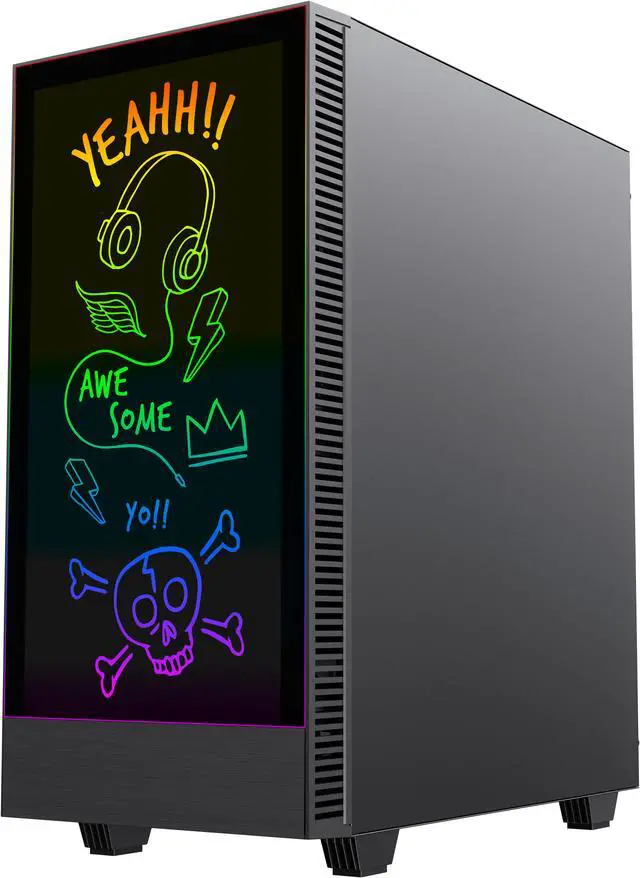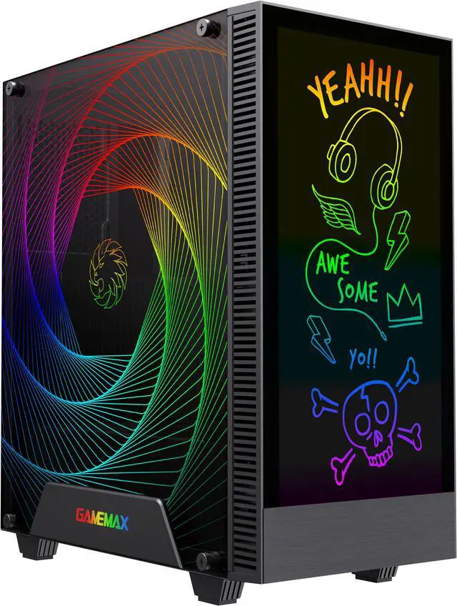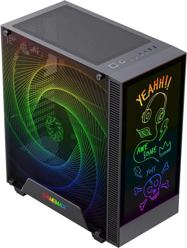 Gamemax Kreator Black USB3.0 Tempered Glass ATX Mid Tower Gaming Computer Case w/ Drawable ARGB GIF on Front Panel and 1 x ARGB Fan x Rear (Pre-Installed)