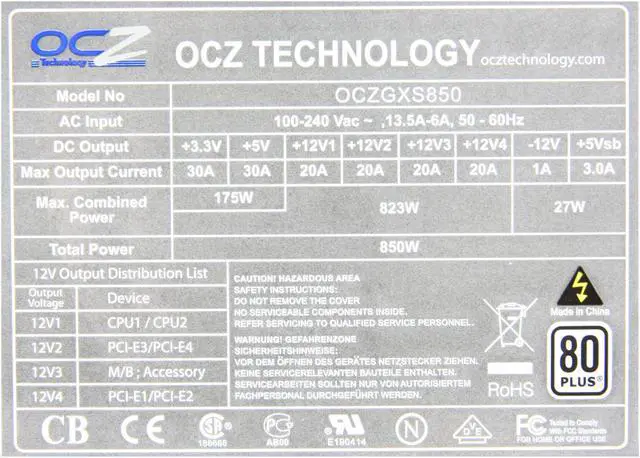 Highly EfficientDelivering up to 80% efficiency at 110V input (up to 83% efficiency at 230v input), the OCZ GameXStream OCZ850GXSSLI saves energy and may even reduce your electric bill!