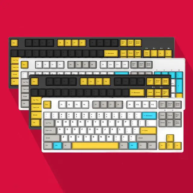 GANSS GS87D Mechanical Keyboard Daul Modes with Red Switch for iOS, Android, Windows and Mac, PBT Key Caps-Black Yellow