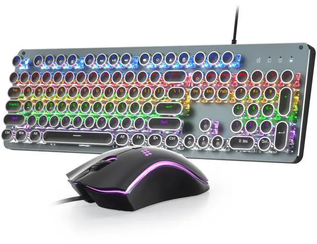 Punk style keycap design: Adopting steampunk style keycaps, embossed craftsmanship with black and grey clashing colours, both retro industrial aesthetics and modern gaming sense, desktop ambience pulls full.