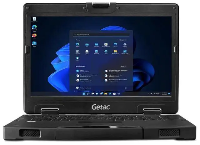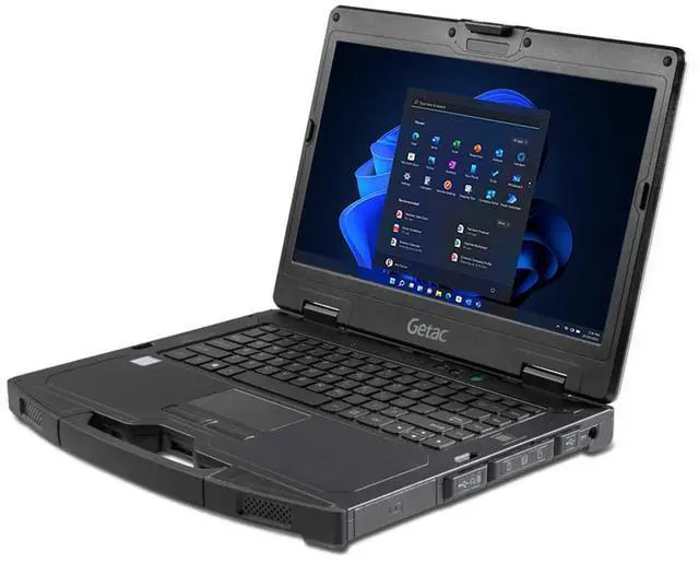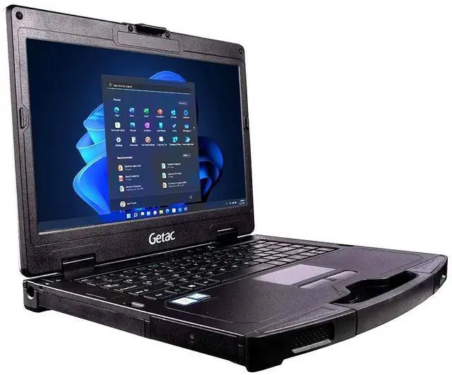 Getac S410 Gen 2, Fully rugged laptop with Intel Core i7 8th Gen, HD Sunlight Readable Touchscreen Display, Fingerprint Reader, and Backlit Keyboard. It comes with Windows 11 Pro pre-installed.
