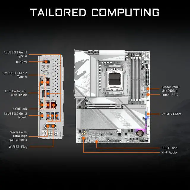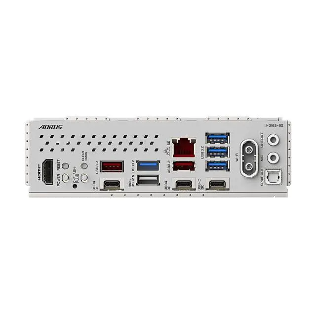 | Back I/O Ports | 1 x HDMI port, 1 x power button, 1 x reset button, 1 x Q-Flash Plus button, 1 x Clear CMOS button, 2 x USB4 USB Type-C ports, 1 x USB Type-C port, 2 x USB 3.2 Gen 2 Type-A ports, 4 x USB 3.2 Gen 1 ports, 1 x USB 2.0/1.1 port, 1 x RJ-45 port, 2 x antenna connectors, 1 x optical S/PDIF Out connector, 2 x audio jacks |