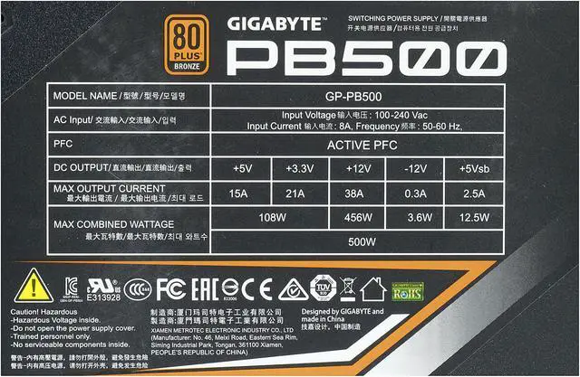 80 Plus Bronze certified ensures better power efficiency and less power waste, which helps reduce the heat and fan noise. PB500 can have up to 86% efficiency. (80 Plus Bronze qualification is 85%)