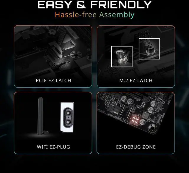 - EZ-Latch Plus: PCIe and M.2 slots with Quick Release & Screwless Design