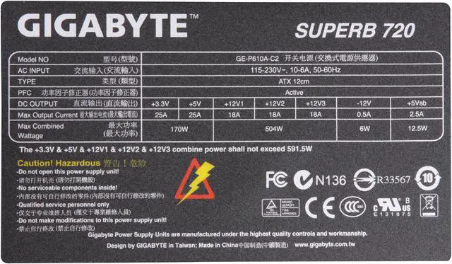 GIGABYTE Superb 720 Peak: 720W, Average: 610W ATX12V V2.2 / EPS12V SLI Ready 80 PLUS Certified Active PFC Power Supply