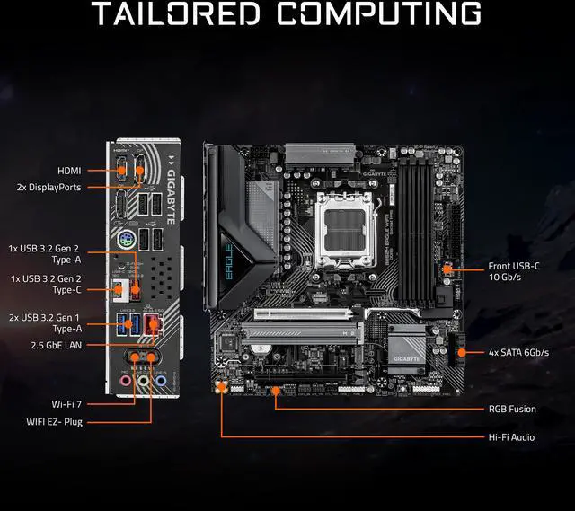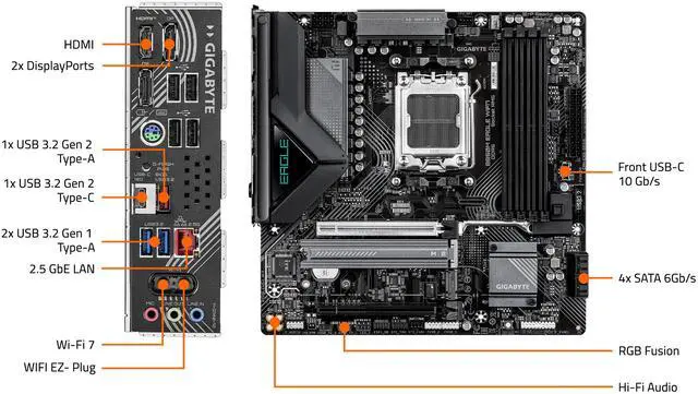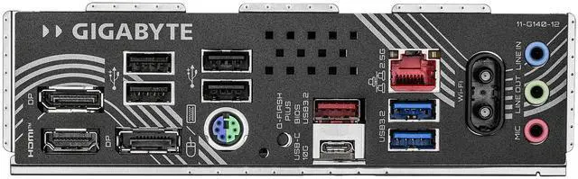 | Back I/O Ports | 1 x HDMI port, 2 x DisplayPorts, 1 x Q-Flash Plus button, 1 x PS/2 keyboard/mouse port, 1 x USB 3.2 Gen 2 Type-A port, 1 x USB Type-C port with USB 3.2 Gen 2 support, 2 x USB 3.2 Gen 1 ports, 4 x USB 2.0/1.1 ports, 1 x RJ-45 port, 2 x antenna connectors, 3 x audio jacks |