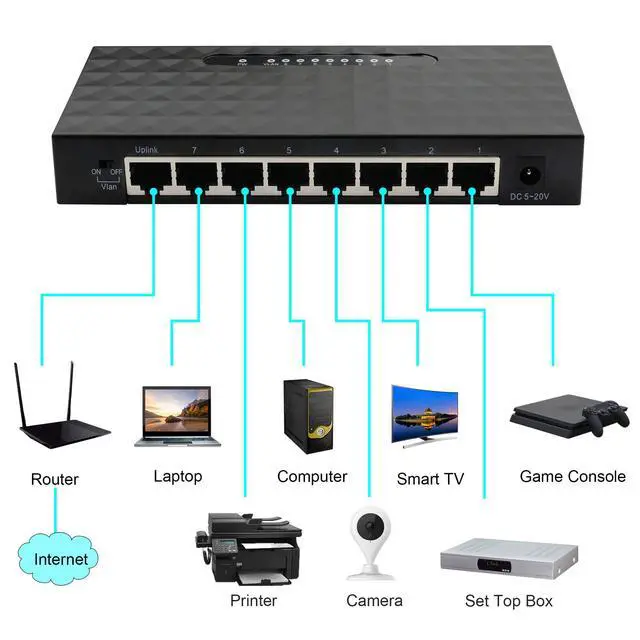 1 x8 port 10/100/1000Mbps network switch