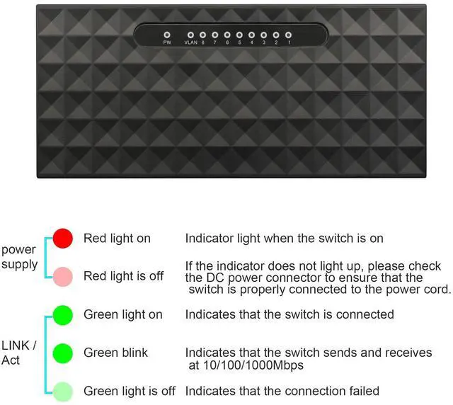 2. Plug and play, easy to use, intelligent connection, just connect the network cable and power cable to the switch to work normally, without any setting.