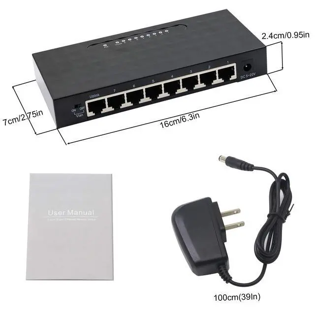 8-port Gigabit switch size: 16cm*7cm*2.4cm