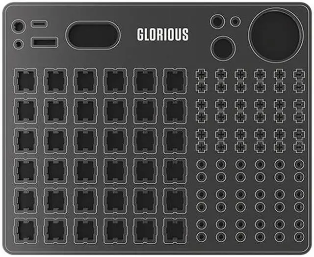 Accessory Slots: 36 x Switch Housings, 36 x Stems, 36 x Springs, 1 x G-Lube, 1 x Standard Lube Vial, 2 x Glorious Lube Brushes, 2 x Standard Paint Brushes, 1 x Standard Tweezer, 1 x Glorious Switch Opener, 1 x Glorious Switch Puller