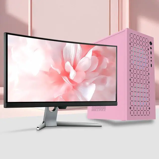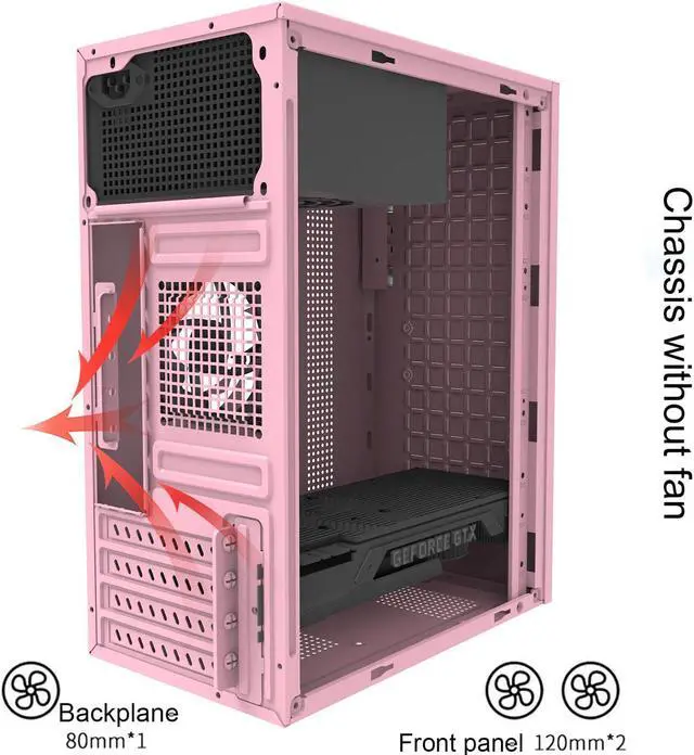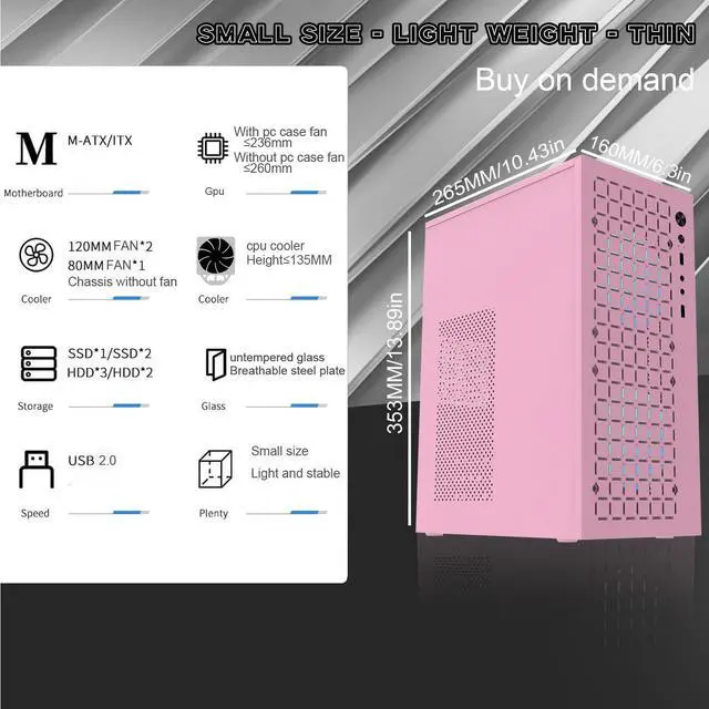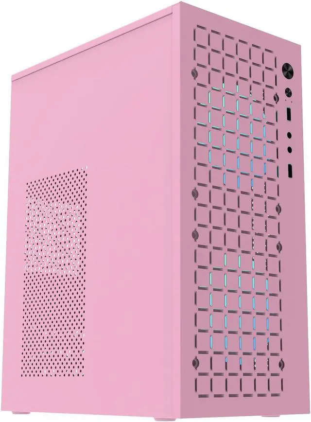 matx case,itx case,High Airflow Micro ATX PC Case, Support MATX, Mini-ITX, Micro ATX case Slim with USB2.0x2 I/O Port, Pink Without Fans