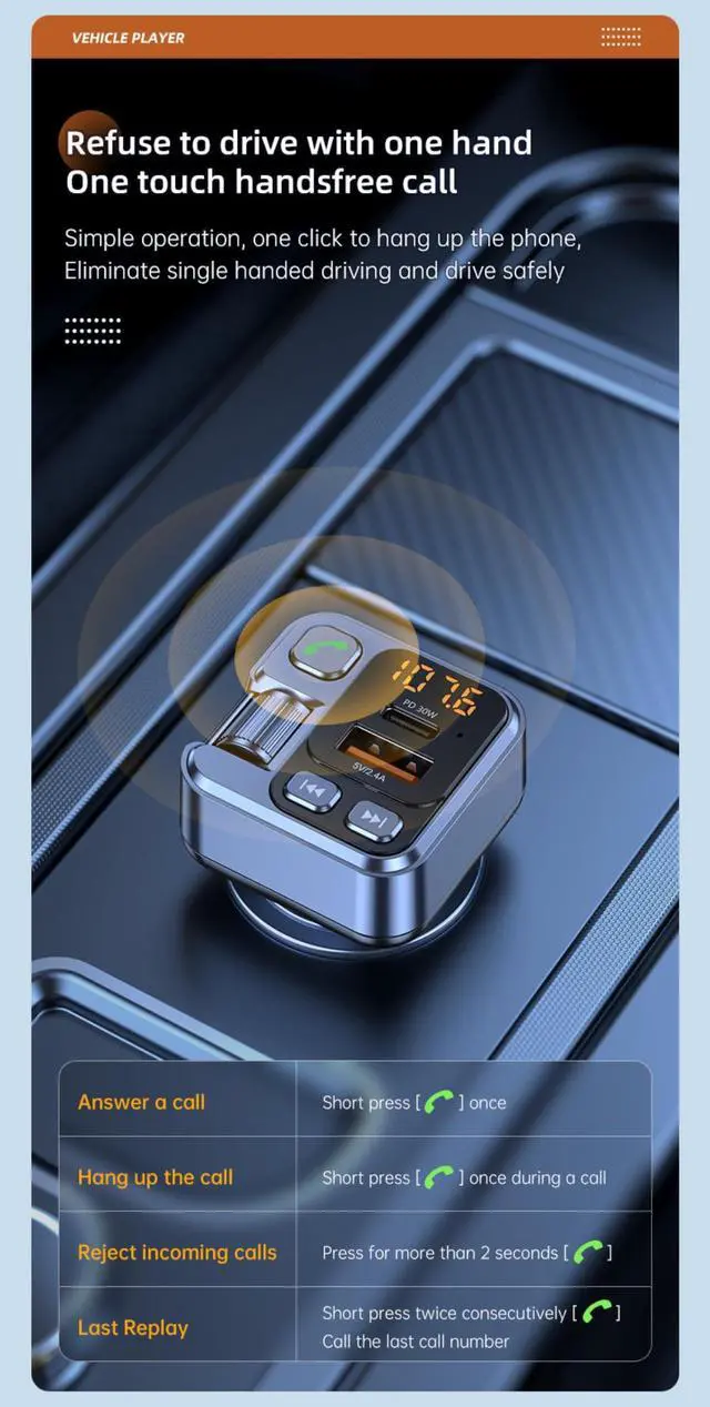 Wireless Vehicle Bluetooth FM Transmitter Car Charger