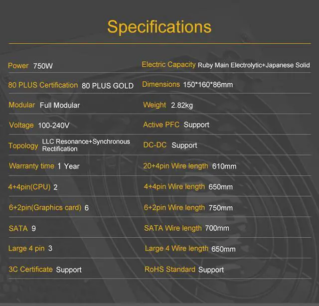 -Mute: The sound is below 30 dBA when power supply is fully loaded at 40 degrees