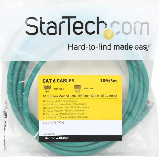10ft Green CAT6 Ethernet cable w/ 100% copper Multi Gigabit 1/2.5/5Gbps and 10Gbps up to 160ft|Fluke patch cord tested to comply w/ ANSI/TIA-568-2.D Category 6