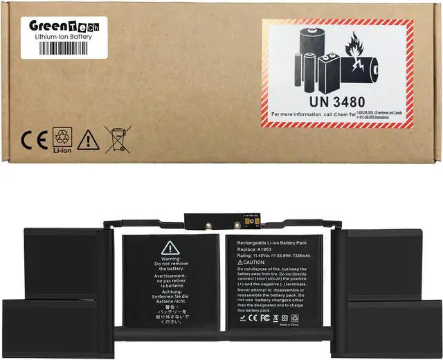 GREENTECH A1953 BATTERY FOR MACBOOK PRO 15 A1990 TOUCHBAR MID 2018 2019 83.6WHR MR932LL/A MV922LL/A EMC 3215 EMC 3359