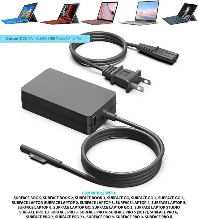 GREENTECH Q5N-00001 65W EQUIVALENT AC ADAPTER FOR MS SURFACE BOOK 2/3 SURFACE LAPTOP 2/3/4/5/6, SURFACE PRO 3/4/5/6/7/8/9/10, SURFACE GO 2/3, W8Z-00001, Q4Q-00001