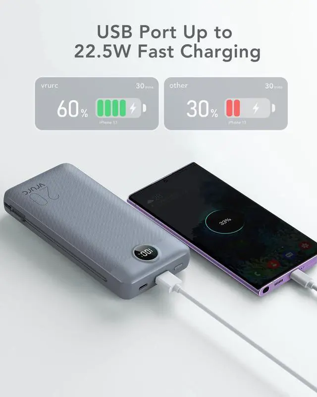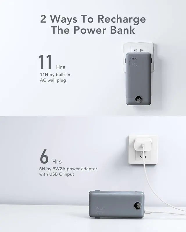 10000mAh Portable Charger With Wall Plug, Fast Charging