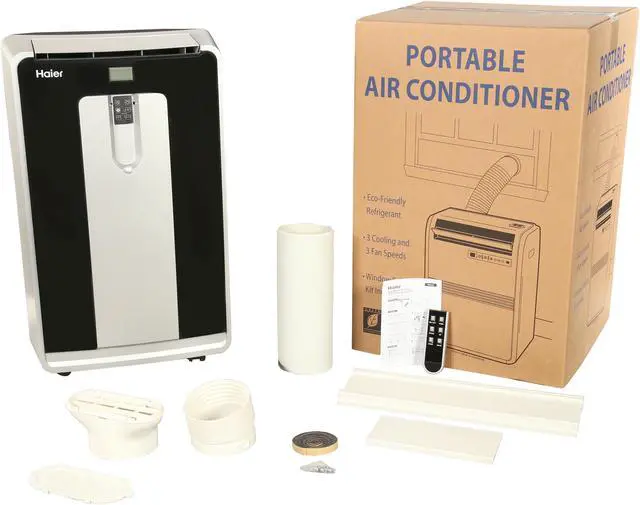 Stay comfortable even during hot and cold weather with the Haier HPN10XHM portable air conditioner. The multi-functional unit meets all of your interior climate needs with cooling, heating, fan and dehumidifying mode. It provides three cooling/ heating/ fan speeds for personalized comfort, and features a 24 hours timer which allows you to set start and stop times when you want, for the cool you want. For easy operation, it not only offers an intuitive control panel at the top of its front panel, but also comes with a full function remote to enable you to control your air conditioner from across the room. Other highlights include auto-evaporation, auto restart, easy installation, and more.