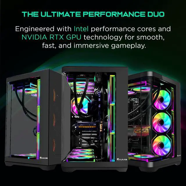 Unleash powerful next-gen gaming with HAJAAN PhantomX Gaming PC. Powered by an AMD Ryzen 7 5700X processor and NVIDIA GeForce RTX 5060 Ti graphics, with 32GB RAM and a fast 1TB NVMe SSD, it delivers smooth, AI-enhanced performance and immersive VR gameplay. Built inside a striking tempered glass showcase with vibrant RGB lighting, this system is designed to stand out while handling demanding games, streaming, and creative workloads with ease.