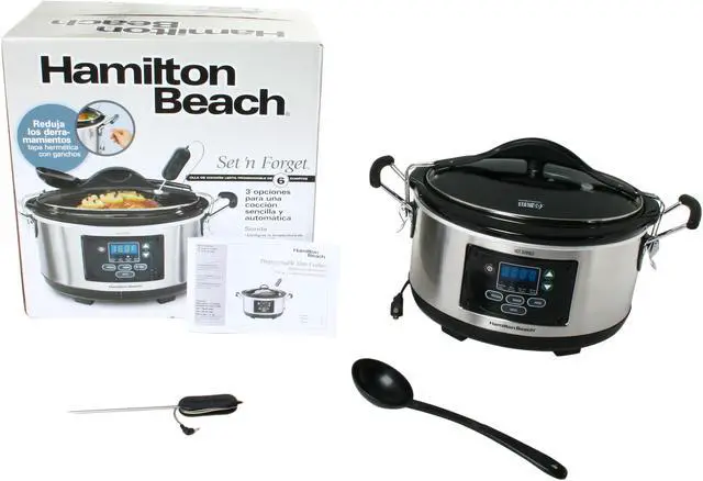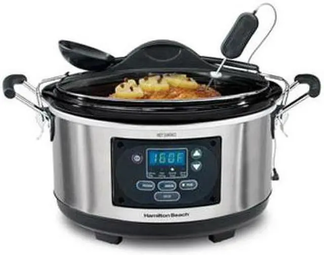 Rich FeaturesThe Hamilton Beach 33967 slow cooker comes with thermometer probe for meat, clip-on spoon, clip-tight gasket lid and full-grip handles for easy transport.