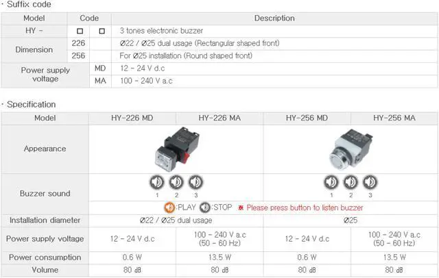 HANYOUNG HY-226MD Electronic Buzzer DC 12-24V New