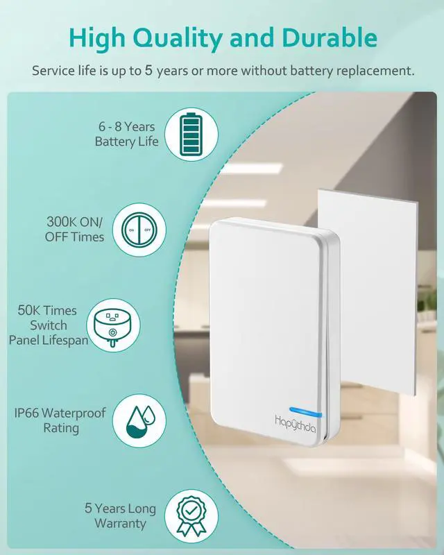 The surface of the wireless switch is made of advanced and premium Fireproof PC material, which can be effectively flame retardant, and has passed FCC, ROHS, and CE certification to protect the safety of your family.