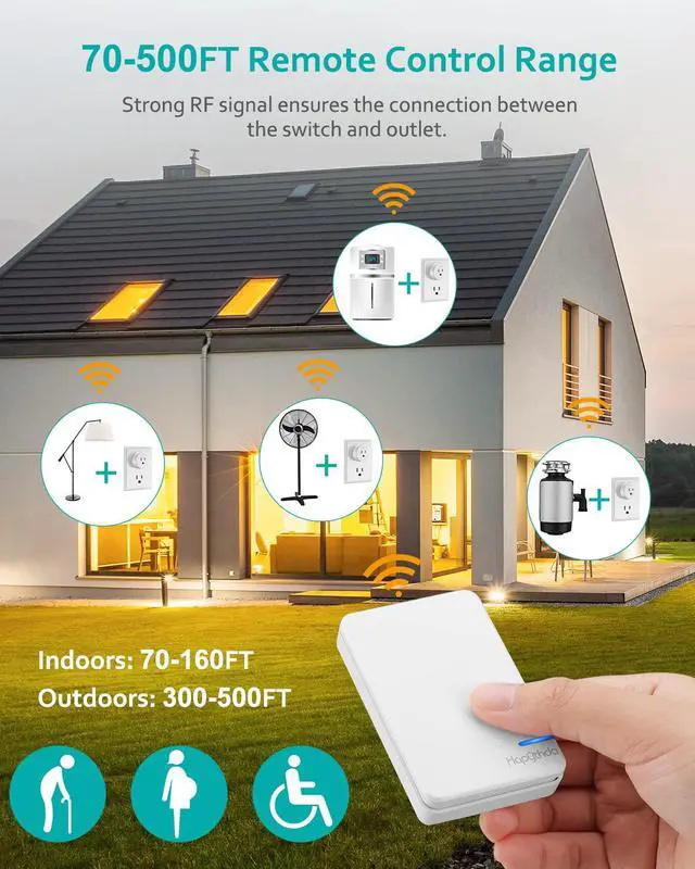 It is very convenient for the elderly with limited mobility, pregnant women, and the disabled to switch lights on and off with the remote control, or turn on/off hard-to-reach household appliances.