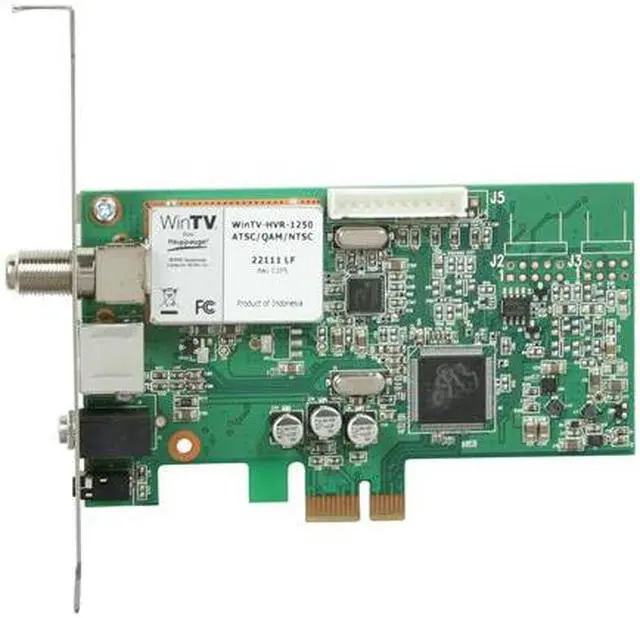 | Features | Functions: TV Tuning Video Recording Video Features: Watch, pause and record TV on your PC, in window or full screen. Uses Hauppauge's SoftPVR to record analog TV programs to your computer's disk drive. Receive ATSC digital TV or Clear QAM digital cable TV, up to 1080i format. Receive NTSC analog cable TV with the built-in 125 channel cable-ready TV tuner. Dolby-TV stereo decoder. Schedule TV recordings with WinTV-Scheduler software. Platform Support: PC Form Factor: Plug-in Card |