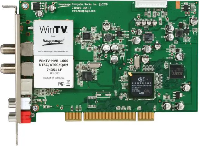 | Package Contents | WinTV-HVR-1600 PCI bus card new model with silicon tuner, 125 channel cable-ready TV tuner, ATSC tuner, hardware MPEG-2 encoder, dbx-TV stereo decoder, S-Video/composite and audio inputs. Windows Media Center certified remote control, receiver and blaster WinTV-HVR-1600 CD-ROM includes: WinTV-HVR-1600 driver for Windows 7, Windows XP, Vista, both 32-bit and 64-bit* |