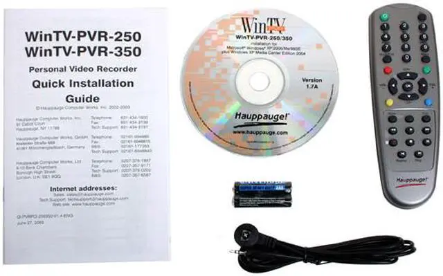 | Package Contents | 980 ( WinTV-PVR-250 ) Driver Disk User Manual Audio Cable Battery Remote Control |