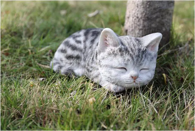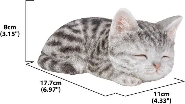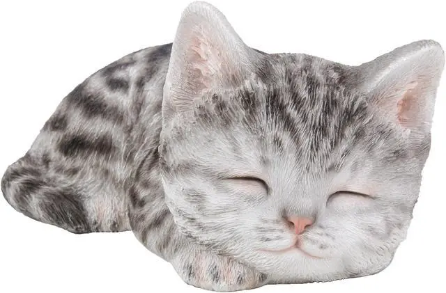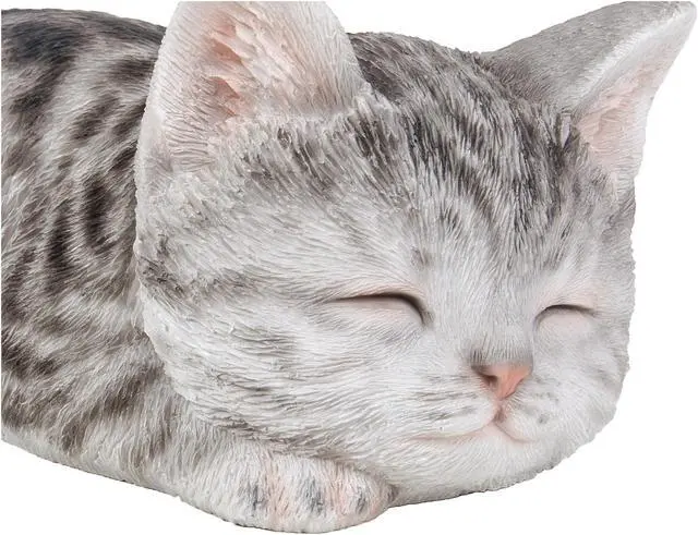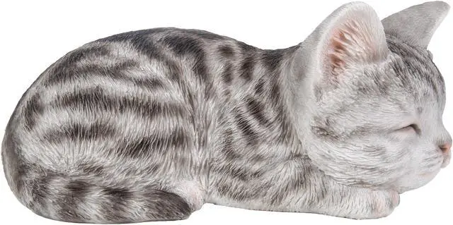 | Features | This Grey Tabby Kitten figurine has life like details that will amuse onlookers. Sleeping peacefully, the realistic features are sure to make you think it is the real thing! Length: 7", Item Composition: Poly-resin, COLOUR: Grey Intricate details Great for your lawn or yard Material: Durable Polyresin Indoor/Outdoor use Theme: Animals Incredibly realistic |
