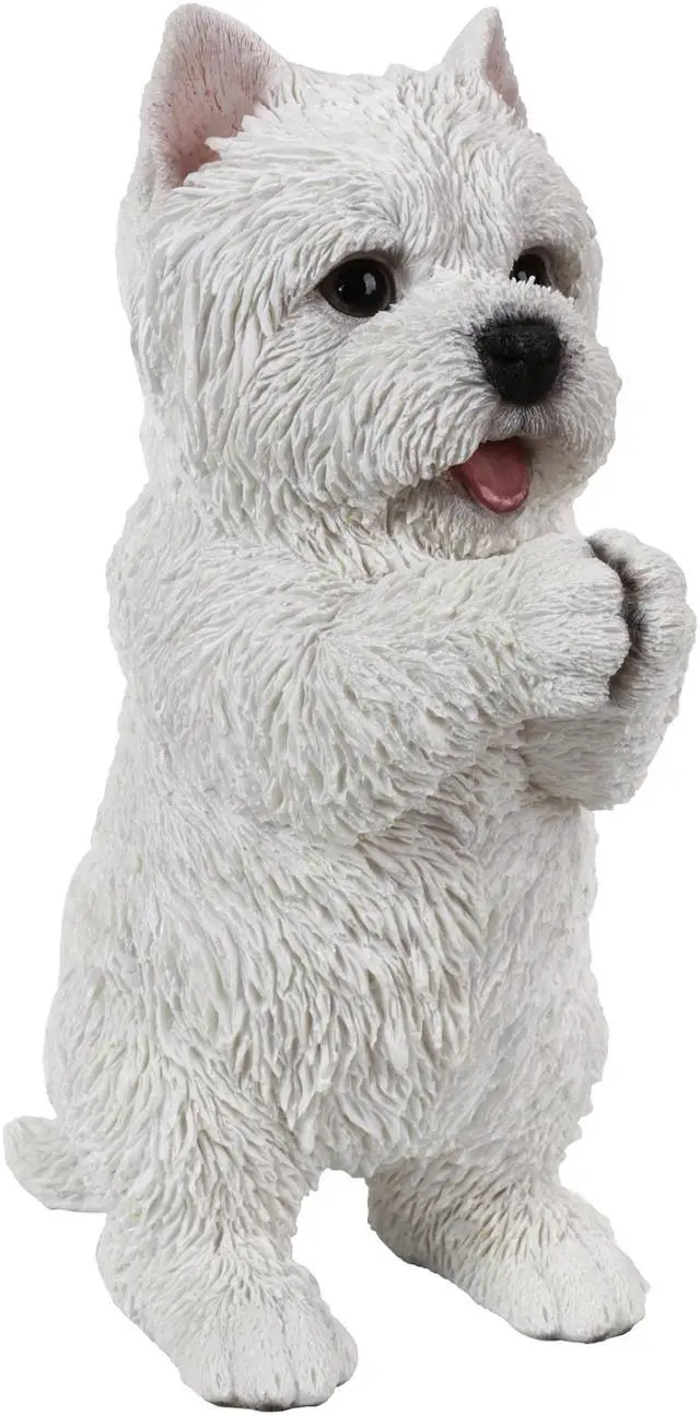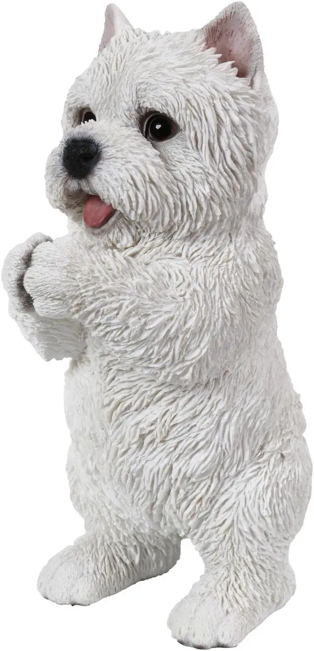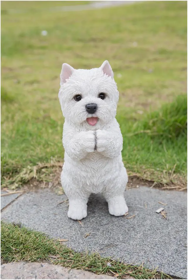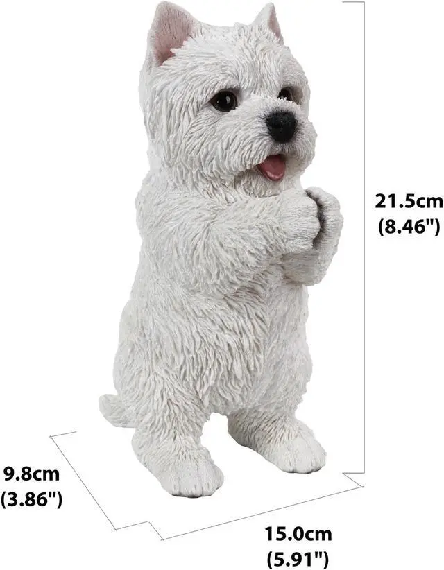 | Features | You will fall instantly in love with this irrestible adorable Westie puppy playing. The puppy is reaching up with both paws to capture your heart. A creative gift for family or friend, or you could just treat yourself to this lovely figurine. A great gift for dog lovers. Material: Durable Polyresin Incredibly realistic Intricate details Great for home and garden decor Theme: Animals Indoor/Outdoor use Colour: White |