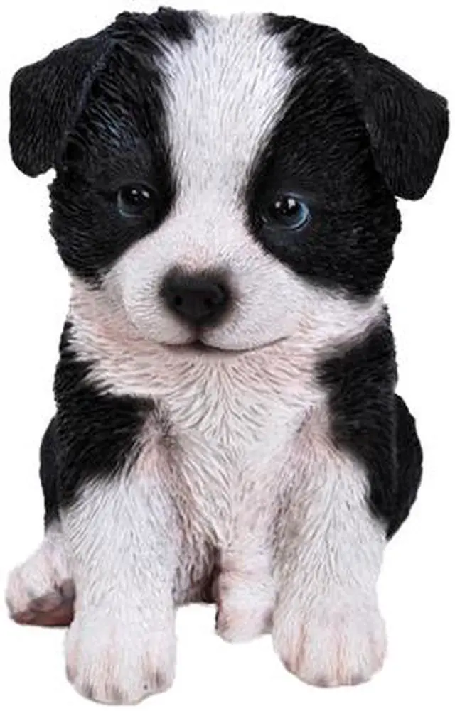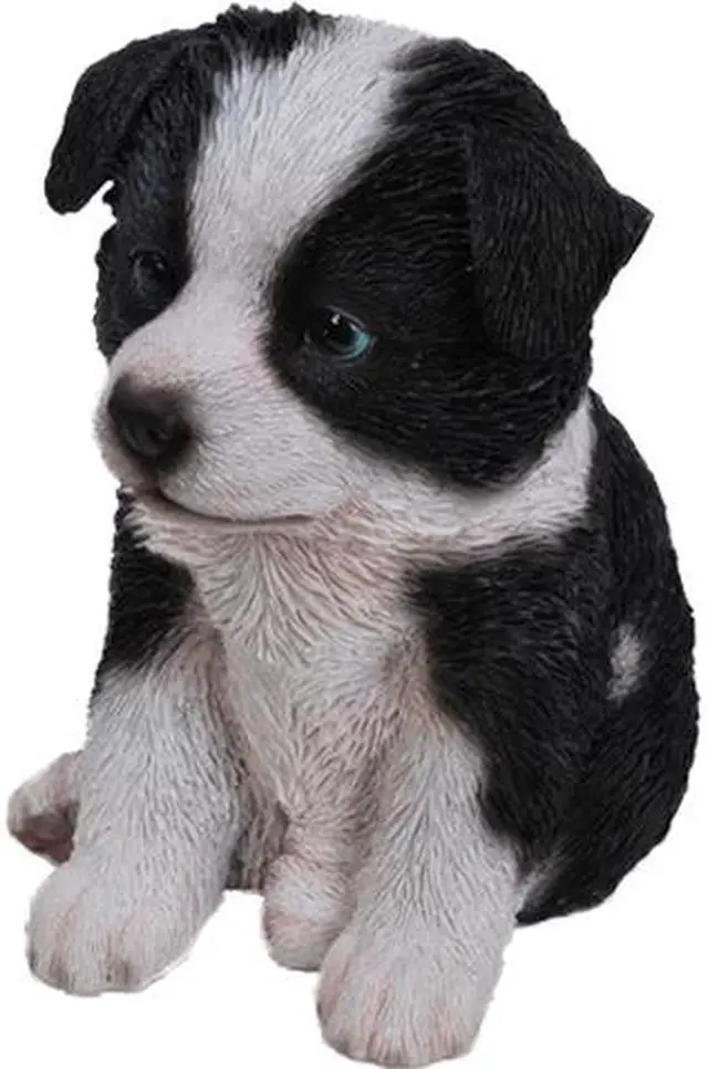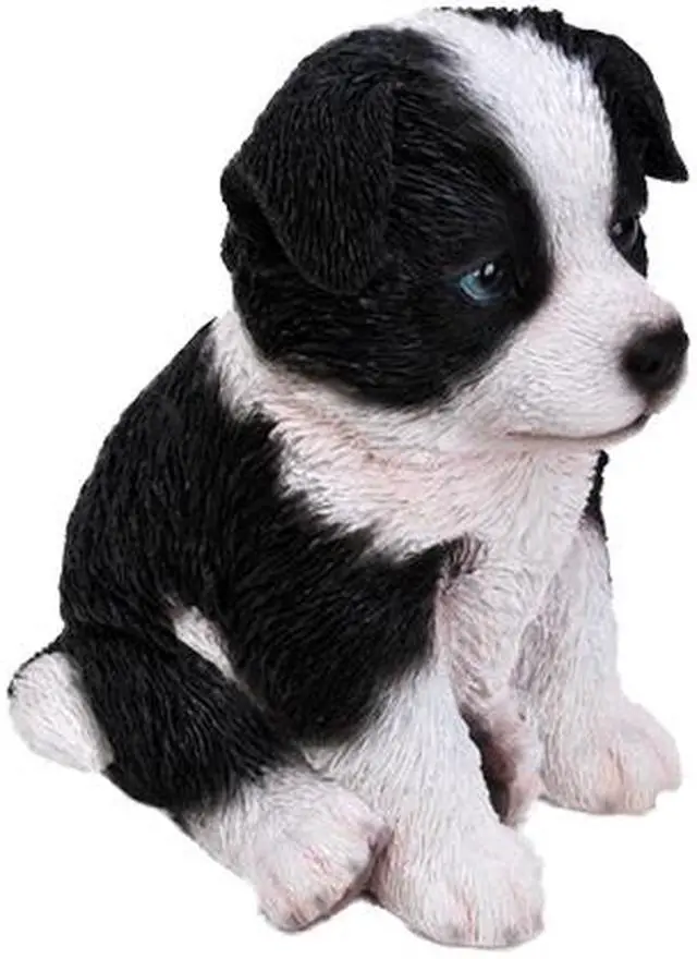 | Features | Detailed sitting border Collie puppy figurine. Stunning craftsmanship with realistic details and features. Add a fun and unique element of surprise to your garden, deck, lawn, home, office, or any outdoor space. Makes a great gift for dog lovers. Theme: Animals Colour: White, Black Material: Durable Polyresin Incredibly realistic Intricate details Indoor/Outdoor use Great for home and garden decor |