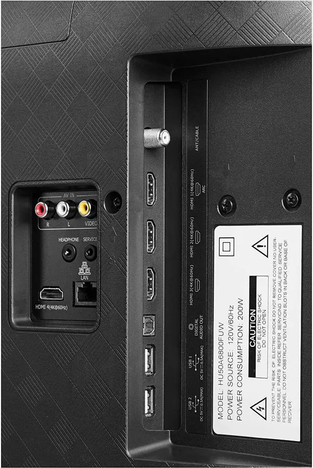 • Inputs: 4 HDMI (1 w/ ARC), 2 USB, RF, Composite, Headphone Jack, Optical Audio Out