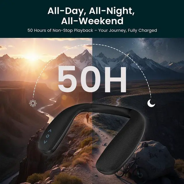 Experience immersive audio freedom with the HomeSpot Wireless Neckband Speaker, a versatile companion for your daily activities. This wearable speaker delivers stunning 3D surround sound and supports advanced audio codecs including aptX HD and LC3 for exceptional clarity. With an impressive 50-hour battery life, you can enjoy continuous playback through long gaming sessions, workdays, or travel. The neckband design offers hands-free convenience while maintaining premium audio quality whether you're working from home, gaming, or on the move. Perfect for users who want personal audio without the isolation of headphones, this speaker combines comfort with powerful sound performance. The wireless design eliminates cable hassles, while the portable form factor makes it ideal for various environments from home offices to gaming setups.
