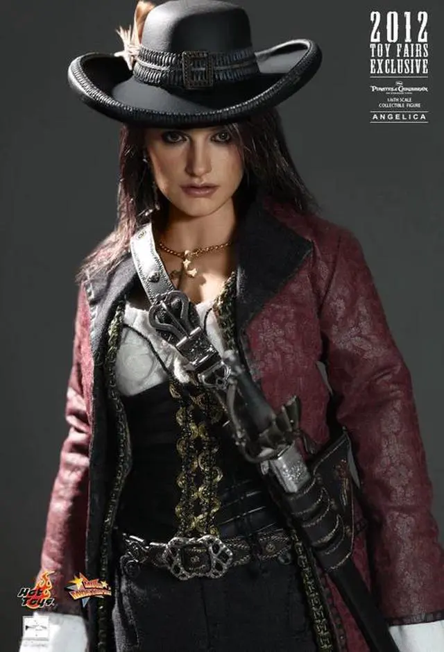 The Angelica Sixth Scale Figure features:*Authentic and detailed fully realized likeness of Penelope Cruz as Angelica in the Pirates of the Caribbean: On Stranger Tides*1x Approximately 12 inches tall*1x Over 28 points of articulation*1x Newly sculpted head with movie-accurate facial expression and make-up*1x Real fabric hair implantation in brownish black, slightly curly hair*1x True Type body with tattoo on chest*5x pieces of interchangeable palms with cross tattoo on left palms and rings including:*1x pair of palms for holding swords*2x pieces of relaxed left palms*1x piece of relaxed gloved right palm*1x Each piece of head sculpt is specially hand-painted*1x black hat with feather*1x reddish brown patterned long jacket*1x patterned long vest*1x white long-sleeved shirt*1x black girdle*1x pair of black pants*1x buckled belt*1x pair of leather-like black boots*2x words with holster*1x dagger*1x pair of earrings*1x gold necklace with charm*1x compass*1x pair of chalices*1x Captain Jack voodoo doll*1x figure stand with Angelica nameplate and the movie logo*Limited edition*Officially licensed*Brand new