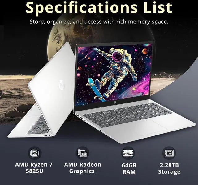The HP 15.6" FHD IPS Laptop combines the power of an AMD Ryzen 7 5825U processor with AMD Radeon graphics, delivering smooth performance, vibrant visuals, and efficient multitasking for work, entertainment, and creative tasks.