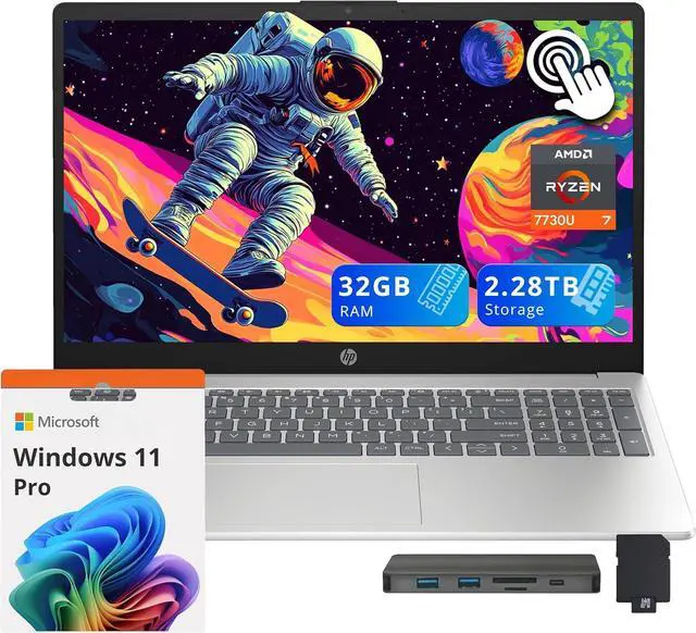 HP 15.6" FHD IPS Touchscreen Laptop delivers smooth and responsive performance with the AMD Ryzen 7 7730U Processor and vivid visuals with AMD Radeon Graphics, making multitasking, content creation, and everyday computing fast and immersive.