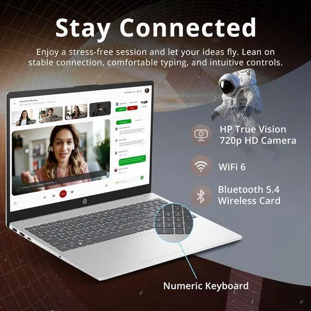 Number Pad: Speed up data entry and work more comfortably with a full numeric keypad. HP True Vision 720p HD Camera: Enjoy sharp, clear visuals for confident video calls.